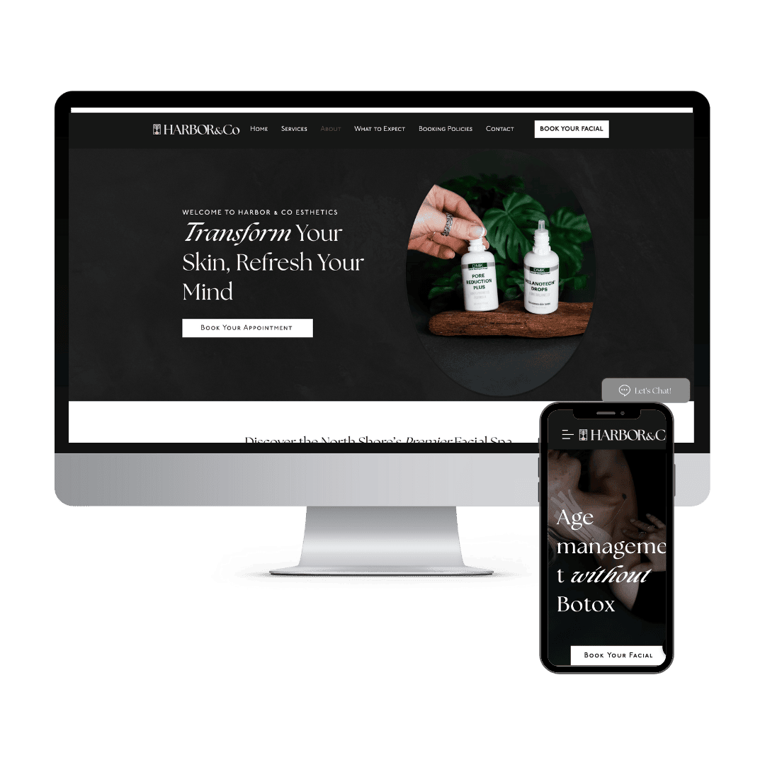 The owner, Kristina DeMarco, approached me seeking to establish a strong online presence for her spa business. With no existing website, Kristina aimed to enhance her visibility and attract more clients through an engaging online platform that she could manage independently. She envisioned a website design reflecting Harbor & Co Esthetics' modern and natural ambiance, highlighting their signature black, white, and light grey color scheme.